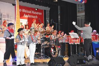 Nicht nur das Pariser Wahrzeichen sondern auch die Musik bei Tänzen sowie des Musikzugs setzten gelungene „französische Akzente“. Ebenso die Elferratsmitglieder waren in der zweiten Halbzeit mit Baskenmützen und Ringelshirts zu lockeren Filous mutiert. Insgesamt warteten die Husaren mit vielen tänzerischen und musikalischen Glanzlichtern auf: