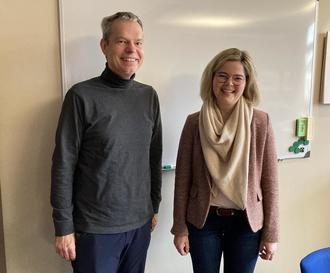 Torsten Lamberz, wissenschaftlicher Mitarbeiter Geysir Andernach und Beate Falterbaum, Stellvertreterin der Schulleiterin am Kurfürst-Salentin-Gymnasium