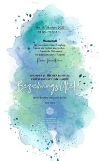 Der nächste BeziehungsAtelier-Abend findet am 16. Oktober von 19 - 21 Uhr in der CityChurch (Erfurter Str 9) statt. Alle Eltern mit Kindern zwischen 1 bis 7 Jahren sind herzlich Willkommen. Der Eintritt ist frei.