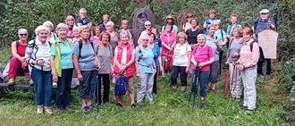 Die Wanderführerinnen Lydia Böhm und Regina Schiff geleiteten die Teilnehmer zunächst auf die Höhen oberhalb des Rheins, von denen man fantastische Ausblicke auf den Rhein genießen konnte. Die Strecke verlief stetig moderat bergauf und bergab in Richtung Dattenberg. In einem kleinen Park an der Kriegergedächtniskapelle, den Resten der ältesten Dattenberger Kirche, wurde eine ausgedehnte Trinkpause eingelegt.