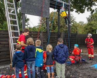 An der Station der Strömungsrettung gab es für die jungen Besucher und Besucherinnen neben Informationen auch einen Höhenflug am Übungsturm.