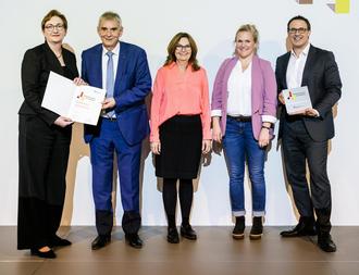 Aus den Händen von Bundesbauministerin Klara Geywitz (links) erhielt Bürgermeister Claus Peitz (2. von links) die Förderurkunde für das „Culinacum“-Projekt. Darüber freuen sich (von rechts) der parlamentarische Staatssekretär Sören Bartol, Kulturamtsleiterin Charlotte Everling und die Andernacher Bundestagsabgeordnete Mechthild Heil.