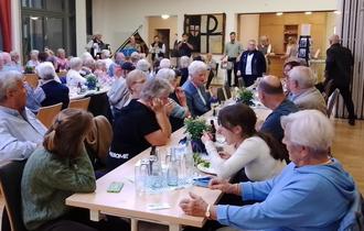Das sehr beliebte Panikorchester begeisterte alle Gäste mit zünftiger Musik und animierte zum Mitsingen und Schunkeln. Sogar eine Polonaise machte sich auf den Weg durch die Reihen. Die Stimmung im Saal war so gut, dass das Panikorchester nicht ohne einige Zugaben gehen durfte und stehend verabschiedet wurde.