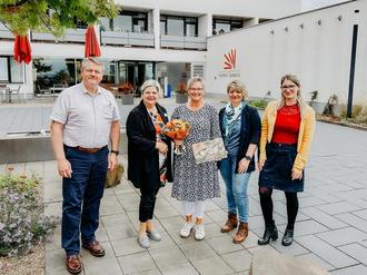 Nun darf sich ihre Familie auf sie freuen und Sigrid Hartig kann jetzt all das machen, was sie bis jetzt hintanstellen musste. Das Leitungsteam um Vorstandsvorsitzende Carmen Mitscher wünscht ihr alles Gute. Von links: Bodo Sorger, Carmen Mitscher, Sigrid Hartig, Anna Jost und Diana Petrek.