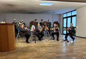 Neben den Ansprachen von Christan Greiner, Achim Hütten und Diakon Andreas Schlösser sorgte das Stadtorchester Andernach für den musikalischen Rahmen. Im Anschluss an die Gedenkstunde wurden Kränze am Ehrendenkmal niedergelegt.