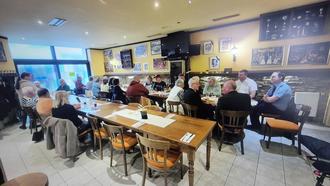 Flott, fleißig und freundlich servierte das Personal der Schlossschänke Getränke und die rheinische Spezialität aus der Küche des Chefkochs Eric. Und alle Nachbarn waren sich schnell einig: hier war wie immer gut gebacken und gebrutzelt worden. Aber nicht nur die Geschmacksnerven kamen auf ihre Kosten, sondern auch die Sehnsucht nach Geselligkeit und Unterhaltung in dieser eher düsteren Novemberzeit. Und so saß man nach dem Verzehr der schmackhaften Speise noch einige Zeit gemütlich zusammen, erzählte von den guten alten Zeiten und aktuellen Ereignissen in unserer Vaterstadt. Alles in allem war dies nach einhelliger Meinung der anwesenden Nachbarn eine gelungene Veranstaltung, die dem Magen aber auch der Seele und dem Gemüt gut getan hat.