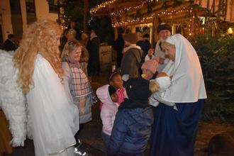 Nach der Aufführung kommen die Besucherinnen und Besucher gerne zu den Darstellern wie etwa Engel, Maria und Josef.