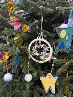 auf faire Weihnachten weist nun auch ein Anhänger auf dem Weihnachtsbaum im Weihnachtsdorf hin.