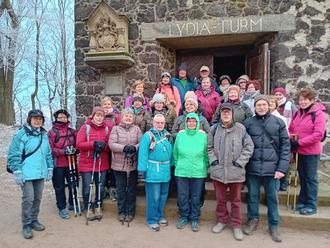Die Wandergruppe des Eifelvereins am Lydia-Turm