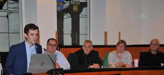 Nachdem Bürgermeister Claus Peitz (Mitte) zahlreiche Gäste im Ratssaal begrüßt hatte, führte Nicolas Junglas (links), wissenschaftlicher Mitarbeiter im Arbeitskreis, unter dem Motto „Auf dem Weg zum UNESCO-Welterbe“ in das Projekt ein. Museumsleiter Dr. Kai Seebert (2. von links) erläuterte anschließend die Rolle Andernachs.