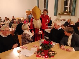 Der Höhepunkt des Nachmittags war jedoch der Besuch des Nikolaus, der es sich nicht nehmen ließ, nach seiner Begrüßung und kurzem Rückblick auf die vergangenen Veranstaltungen der Nachbarschaft in diesem Jahr jeden Gast mit einem persönlichen Händedruck und einem kleinen Präsent zu begrüßen. Mit einem gebührenden Lied wurde der Nikolaus dann schließlich verabschiedet.