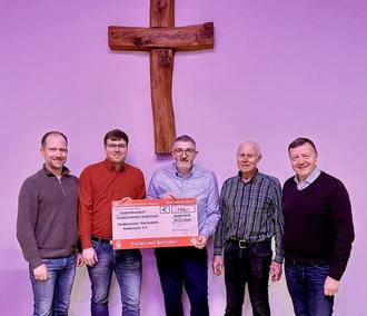 Die Übergabe erfolgte durch den Vorsitzenden des Stadtorchesters Andernach, Philipp König, der den Scheck an den Vorsitzenden des Fördervereins Mariendom, Frank Mertes, sowie an den Schatzmeister, Reinhard Helf, überreichte.