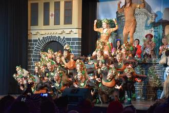 Durch lautes Kreischen und drolligen Sprüngen machten die Akteure der Gemischen Schautanzgruppe (Trainerinnen Ela Stromberg und Michelle Kussmann) auf sich aufmerksam. In Anlehnung an das Musical Tarzan waren diese zu wilden Affen mutiert, die sich zu Pulks sammelten oder tänzerisch so in die Luft schwangen, als würden sie an Bäumen hochklettern.