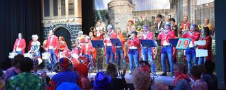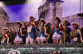 Sein Jubiläum 5x11 Jahre beging der Stabsmusikzug unter Leitung von Tambourmajor Lars Roedig mit einer musikalischen Reise nach Köln. Ein guter Einfall: Um den Fans zu zeigen, von wann die kölschen Hits stammten, wurden Tafeln mit den Jahreszahlen hoch gehalten. Kaum zu glauben, dass die Reihe bis ins Jahr 1929 zurück reichte und die Lieder immer noch so packend sind, nicht zuletzt Dank der mitreißenden Performance durch die Musikerinnen und Musiker, von denen viele auch im Vorstand der Garde aktiv sind.