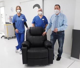 Die Entscheidung fiel auf einen Massagesessel. Es dauerte nicht lange, da brachte Christian Keller einen wunderbaren Massagesessel mit Heizfunktion in die Notaufnahme. Dieses Geschenk kam extrem gut an.