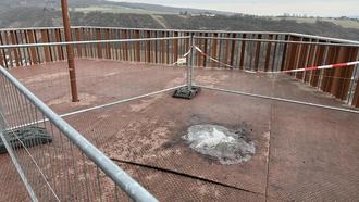 Leider musste die Stadt auch schon Rückschläge hinnehmen. Denn die Kanzel ist bereits mehrfach Vandalismus zum Opfer gefallen. Erst kürzlich wurde ein Feuer gelegt, das die Stahlplatten der neuen Plattform teilweise deformiert hat. Aufgrund der Hitze haben sich einige Platten gehoben und müssen ausgetauscht werden. Der geschätzte Schaden beläuft sich auf mehrere tausend Euro. Die Stadt hat bereits Strafanzeige gegen Unbekannt gestellt.