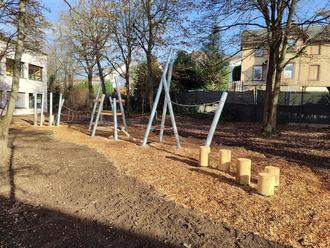 Ein neuer Balancierparcours und ein kleiner Kletterparcours bieten eine ideale Kombination aus Herausforderung und Spaß, sind sehr effektiv für eine gesunde körperliche Entwicklung und um die Motorik der Kinder zu schulen.