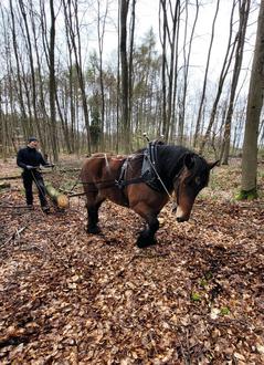 Das Vorliefern, also der Transport von frisch gefällten Stämmen aus dem Bestand heraus zur nächsten Rückegasse oder ggf. direkt zur befestigten Waldstraße, gilt als idealer Arbeitsschritt, der heute wieder von Pferden übernommen werden kann – ganz im Einklang mit dem Leitbild einer nachhaltigen, naturnahen Waldbewirtschaftung.