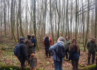 Revierförster Johannes Biwer und Bürgermeister Christoph Mohr im Austausch mit Mitgliedern des NABU Neuwied und Umgebung.