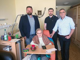 Bürgermeister Mohr gratulierte Josefine Böhm zum 90. Geburtstag. Auch ihr Enkel und ihr Sohn waren zur Feier des Tages gekommen.