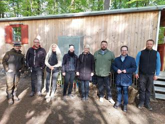 Bürgermeister Christoph Mohr, Ines Lindemann-Günther und Bettina Winkler vom Bendorfer Kinder- und Jugendkompetenzzentrum, Michaela Höfer vom Fachbereich Ordnung und Soziales, Jugendpfleger Sascha Rüger, Personalratsvorsitzender Dennis John und Förster Johannes Biwer informierten sich über das Konzept der naturnahen Kita, in der die Kinder ohne Reizüberflutung viel Zeit im Freien verbringen können.