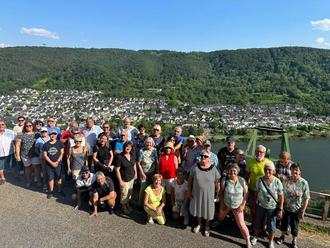 Am Freitag wurde ausgiebig der Ort Winningen besichtigt. Anschließend fuhren drei Planwagen durch die Steillagen der Mosel, wo Winzer Fries über den Weinanbau informierte.