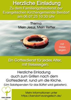 | 10:30 Uhr | Familiengottesdienst (Dedekind) mit Reisesegen anschließend Grillen und Mitbring-Mittagessen, rund um die Kirche |