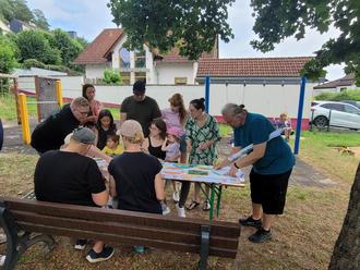 Interessierte Familien nutzten die Chance, sich an der Spielplatzgestaltung Vierwindenhöhe zu beteiligen.