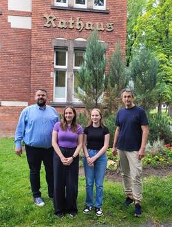 (v.l.n.r.): Bürgermeister Christoph Mohr, Alina Wiest, Joline Gentsch, Büroleiter Thomas Gutfrucht