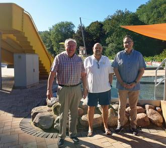 Erster Beigeordneter Bernhard Wiemer, Schwimmmeister Michael Woischwill und Werkleiter Michael Stiren sind zufrieden mit der Badesaison 2023.