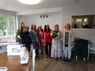 Die Beigeordnete Loni Wellert (rechts) wünschte Kathrin Fleischmann (2.v.r.) alles Gute zur Eröffnung des Nähcafés.