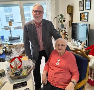 Zum runden Geburtstag der Seniorin am 20. Januar schaute auch der Erste Beigeordnete der Stadt Bendorf mit herzlichen Glückwünschen und einem Präsentkorb vorbei.