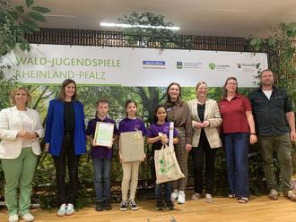Mainz. Bei einer feierlichen Landessiegerehrung im Ministerium für Klimaschutz, Umwelt, Energie und Mobilität in Mainz wurden die Gewinnerklassen der diesjährigen Wald-Jugendspiele ausgezeichnet. Klimaschutzministerin Katrin Eder ehrte gemeinsam mit Isabel Mackensen-Geis, Vorsitzende der Schutzgemeinschaft Deutscher Wald (SDW), Landesverband Rheinland-Pfalz und Jessica Wiedermann von der Sparda-Bank Südwest eG die Sieger:innen.