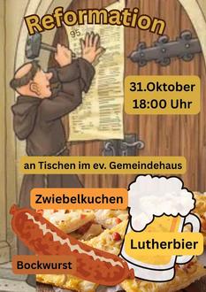| 18:00 Uhr | Gottesdienst mit Abendmahl im Gemeindehaus. Anschließend wird die Gemeinde eingeladen, wie Martin Luther es pflegte, bei Speise und Trank zu verweilen. |