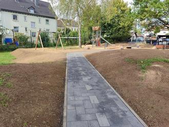 Besonders spannend ist die neue Bobbycar-Strecke, die nicht nur als gepflasterter Weg alle Spielgeräte miteinander verbindet, sondern auch den Kindern eine eigene Bahn für schnelle Runden und actionreiche Fahrten bietet. Diese Strecke ist ein echtes Highlight, das zusätzlichen Bewegungsraum und Spielspaß bietet und gleichzeitig das Thema Inklusion berücksichtigt.