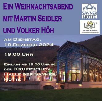 Freuen Sie sich auf vorweihnachtlichen Genuss pur, wenn die Glöckchen klingeln und der Schnee leise rieselt in der Krupp’schen Halle der Sayner Hütte. Ein wahrer Ohrenschmaus - auch für Herz und Seele! Alle Einnahmen werden zu 100% für krebskranke, notleidende und hilfsbedürftige Kinder in Rheinland-Pfalz gespendet.