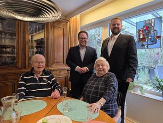 Werner und Rosi Bildhauer freuten sich über die Glückwünsche von Pascal Badziong und Christoph Mohr zur Gnadenhochzeit.