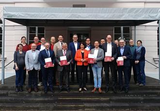 Remagen. Wirtschaftsministern Daniela Schmitt hat den zehn Kommunen des kommunalen Verbundprojekts „Mitten am Rhein“ im Rathaus in Remagen zehn KIPKI-Förderbescheide in Höhe von insgesamt rund 3,8 Millionen Euro überreicht.