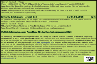 Das Angebot ist als offenes Kreativangebot konzipiert. Eine Anmeldung ist nicht erforderlich, die Teilnahme ist kostenfrei. Der Jugendtreff befindet sich im 2. OG im @viedel (Bachstr. 19, 56751 Polch) und ist über den Eingang im „alten“ Gebäudeteil (Gebäude 2- Altbau) zu erreichen.