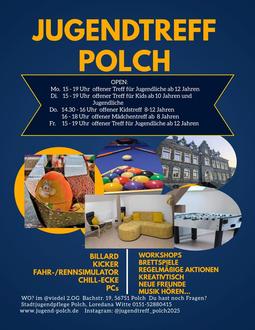 Weitere Rückfragen oder weitere Infos sowie Öffnungszeiten des Jugendtreffs, geplante Aktionen und Aktivitäten gibt es bei Loredana Witte, Stadtjugendpflege Polch, Tel.: 0151-52880415, E-Mail: info@jugend-polch.de sowie auf unserer Website www.jugend-polch.de