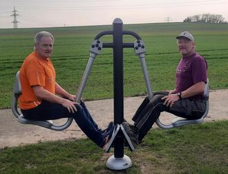 Der Gemeindearbeiter der Ortsgemeinde, Thomas Lauterbach, bereitete zunächst den Einbau der Halterung vor und betonierte diese am Seitenstreifen des Radweges von Pillig in Richtung Pyrmonter Mühle ein. Nach der Aushärtung des Fundaments konnte die Beinpresse anschließend von Thomas Lauterbach gemeinsam mit Ortsbürgermeister Horst Klee montiert werden.