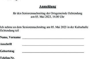 Anmeldezettel zur Teilnahme am Seniorennachmittag liegen auch ab sofort im Rathaus aus.