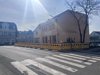 Die beauftragte Tiefbaufirma hat bereits die Baustelle eingezäunt. Betroffen ist davon auch die rechte Abbiegespur Richtung Mayen. Die Mitarbeiter des Bauhofs haben im Anschluss die entsprechenden Wegweiser-Schilder an der Absperrung angebracht, die vorher an der Kreuzung sichtbar waren.