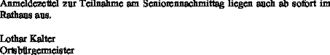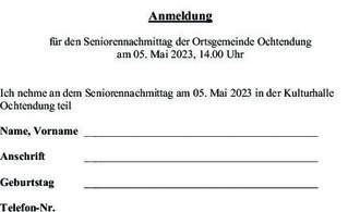 Anmeldezettel zur Teilnahme am Seniorennachmittag liegen auch ab sofort im Rathaus aus.