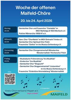 Weitere Informationen zu Terminen, Orten und teilnehmenden Chören gibt es unter: www.kreis-chorverband-mayen.de/aktuelles.html