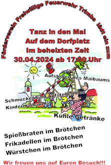 Verbringen Sie ein paar gesellige Stunden beim „Tanz in den Mai“ 2024 auf dem Dorfplatz in Trimbs. Mit Ihrer Teilnahme unterstützen Sie die Förderung des Brauchtums in unserem Heimatort. Schauen Sie vorbei. Wir freuen uns auf Ihren Besuch.
