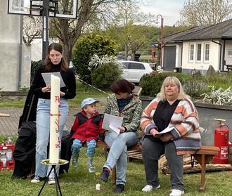 Ein besonderes Highlight war unser erstes Osterfeuer am Karsamstag. Am Abend versammelten sich zahlreiche Gemeindemitglieder am Feuer, das symbolisch für Licht und Hoffnung steht. Die Atmosphäre war geprägt von Gemeinschaft, einer Andacht und fröhlichen Gesprächen.