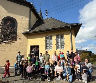 Auch in diesem Jahr zogen wieder viele Kinder und Erwachsene am Karfreitag und Ostersamstag mit Holzkleppern durch die Straßen von Kollig. Durch die große Teilnehmerzahl konnten wir uns an beiden Tagen in zwei Gruppen aufteilen und durch das ganze Dorf ziehen.