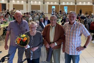Ein Programmpunkt darf bei keinem Seniorennachmittag fehlen: die Ehrung der ältesten Teilnehmerin und des ältesten Teilnehmers. Erna Gries mit ihren vor kurzem erreichten 90 Lebensjahren und Alfred Weigt, immerhin bereits 96 Jahre alt, waren in diesem Jahr die Alters-Spitzenreiter. Unter dem großen Beifall aller Besucherinnen und Besucher absolvierten sie gekonnt einen Ehrentanz und nahmen ihre verdienten Präsente in Empfang.