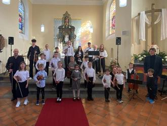 Das Ensemble Allegranza der Kreismusikschule Mayen-Koblenz unter der Leitung von David Rodriguez hatte zum Kirchenkonzert nach Kalt eingeladen. Das abwechslungsreiche Konzert gestalteten Anfängerschüler*innen bis hin zu fortgeschrittenen Schüler*innen. Vorgetragen wurden in unterschiedlichen Besetzungen Kinderlieder, irische Stücke und auch klassische Werke wie eine Sonate von J. S. Bach. Unterstützt wurde das Ensemble von Harald Meyer am Klavier und bei den irischen Liedern von Michael Misterek an der Gitarre.
